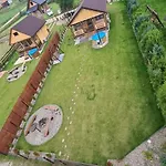The 1-bedroom Siedlisko Nad Jeziorem Skarlinskim 5B, Mazury, Jezioro, Domek, Bania features a terrace with views of the lake as well as a heated pool.